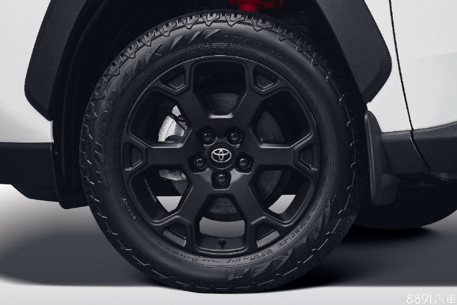 RAV4躍野冒險版改搭18吋鋁圈,雖較Adventure 4WD車型小了1吋,但五幅造型與消光黑的配置更加吸睛,參照官網的照片,配胎選用飛隼WILDPEAK A/T Trail 01A全地形越野胎,規格為225/60R18,相較標準版,懸吊及距地高分別提高15mm及10mm,更加強調地形穿越能力。