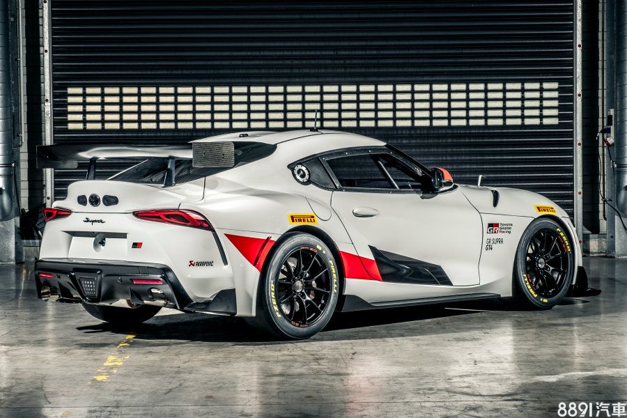 GR Supra GT4在外觀上大致沿用概念車的設計,僅針對部分細節與空力表現做強化。車身下,GR Supra GT4車體基礎採用鋼材打造,並搭配高剛性防滾籠做結構補強,至於前下唇與大型尾翼則採天然纖維複合材料所打造。