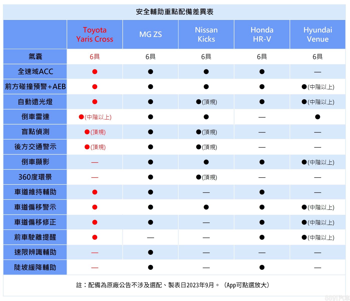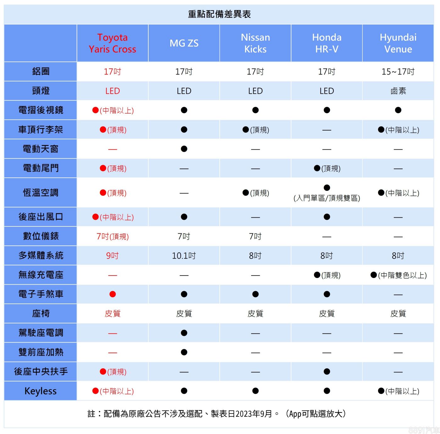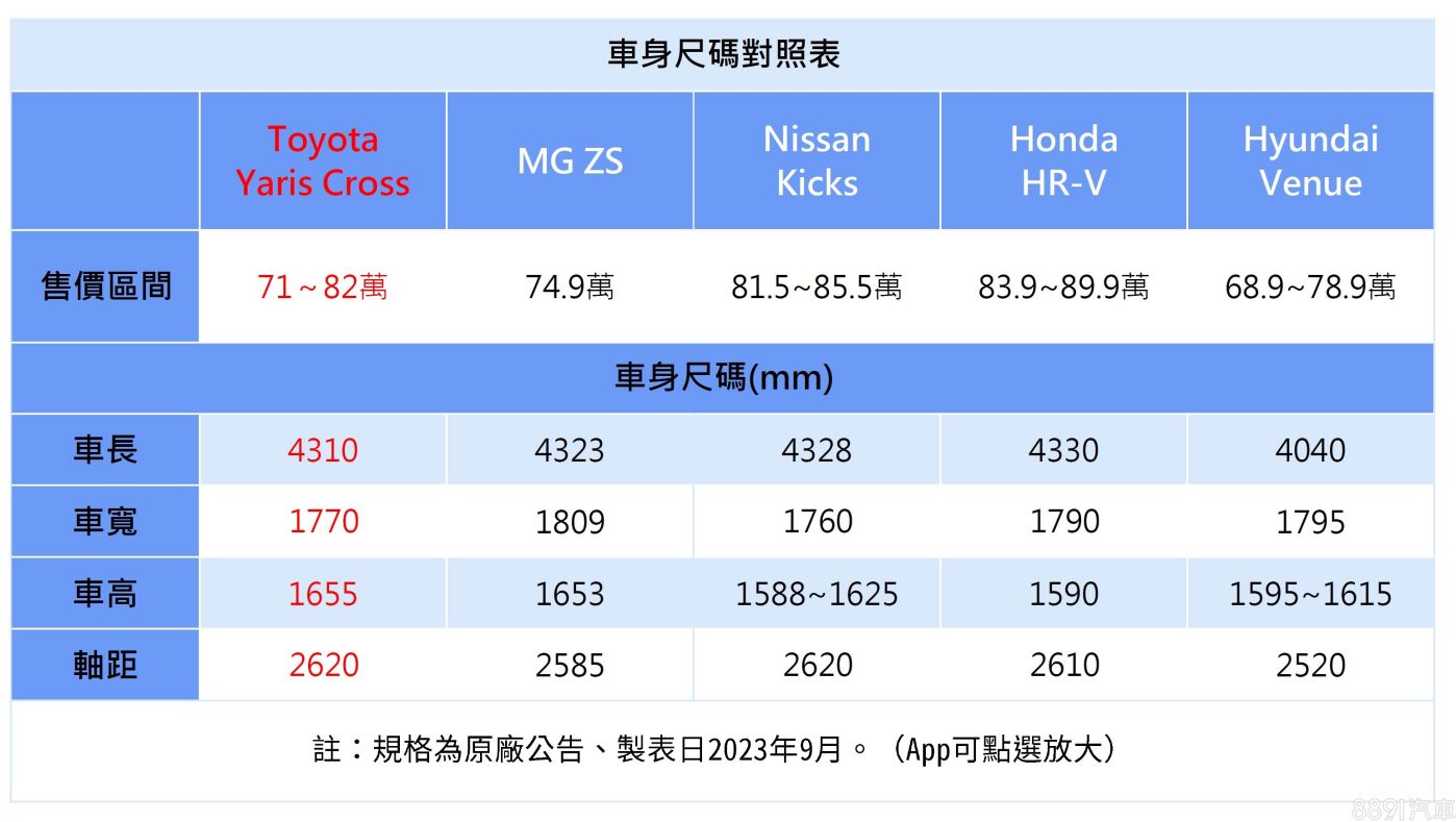 Yaris Cross的定價範圍幾乎涵蓋眾家競品,入門版用以填補Yaris停產後所留下的70萬產品空缺,鎖定經濟型買家,目標瞄準同級入手價最親民的Venue,而頂規價格82萬也硬是比「天花板」HR-V還要便宜,是一個「我全都要」的節奏!以「牛頭牌」在國內的受歡迎程度,再加上目前接單爆量的情形來看,對手確實很有壓力!