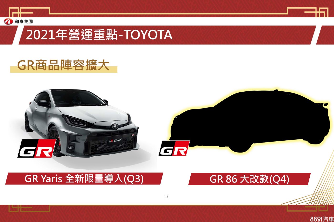 作為Toyota第二款冠上GR之名的性能車款,GR Yaris搭載的是1.6升直列三缸渦輪汽油引擎,搭配6速手排變速箱,最大出力為272hp/37.7kgm,並為四驅設定,0~100km/h可於5.5秒完成,極速為230km/h。以TNGA平台打造的新車,也由於四驅配置,後懸吊和一般版本的扭力樑不同,採用雙A臂配置。