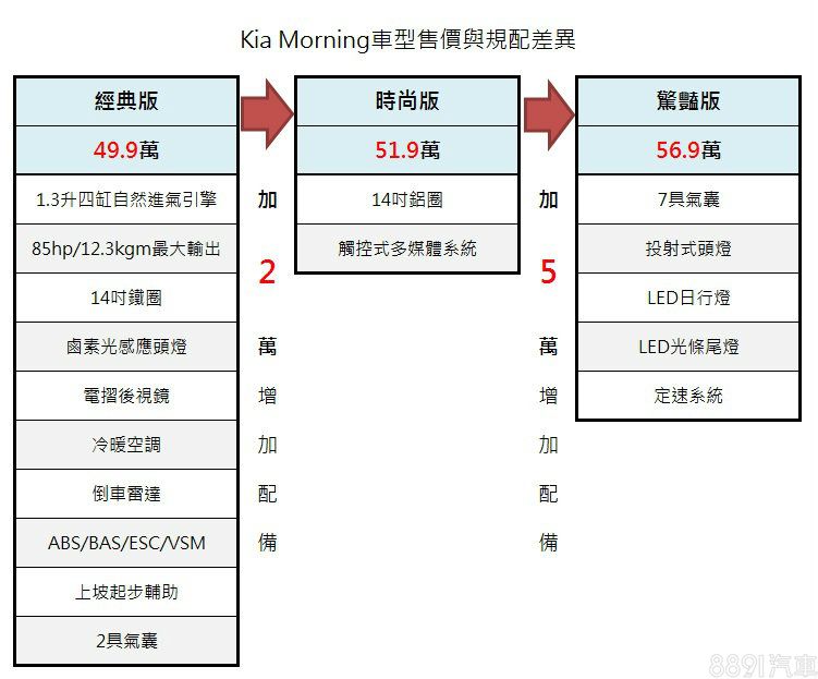 最高C/P值 Kia Morning(49.9~56.9萬)