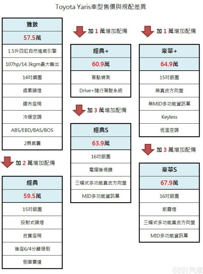 也算神車界中一員的Yaris,小改款於去年6月上市,全車系配備只能算的上「堪用」,60萬內可入手的有2車型,其重點在於新車換上更節能的新引擎,開起來更順暢、更容易讓人感到得心應手之外,原廠提供的平均油耗從15.1Km/L進步到17.2km/L,此番數據頗為亮眼,可說是會跑又吃更少!