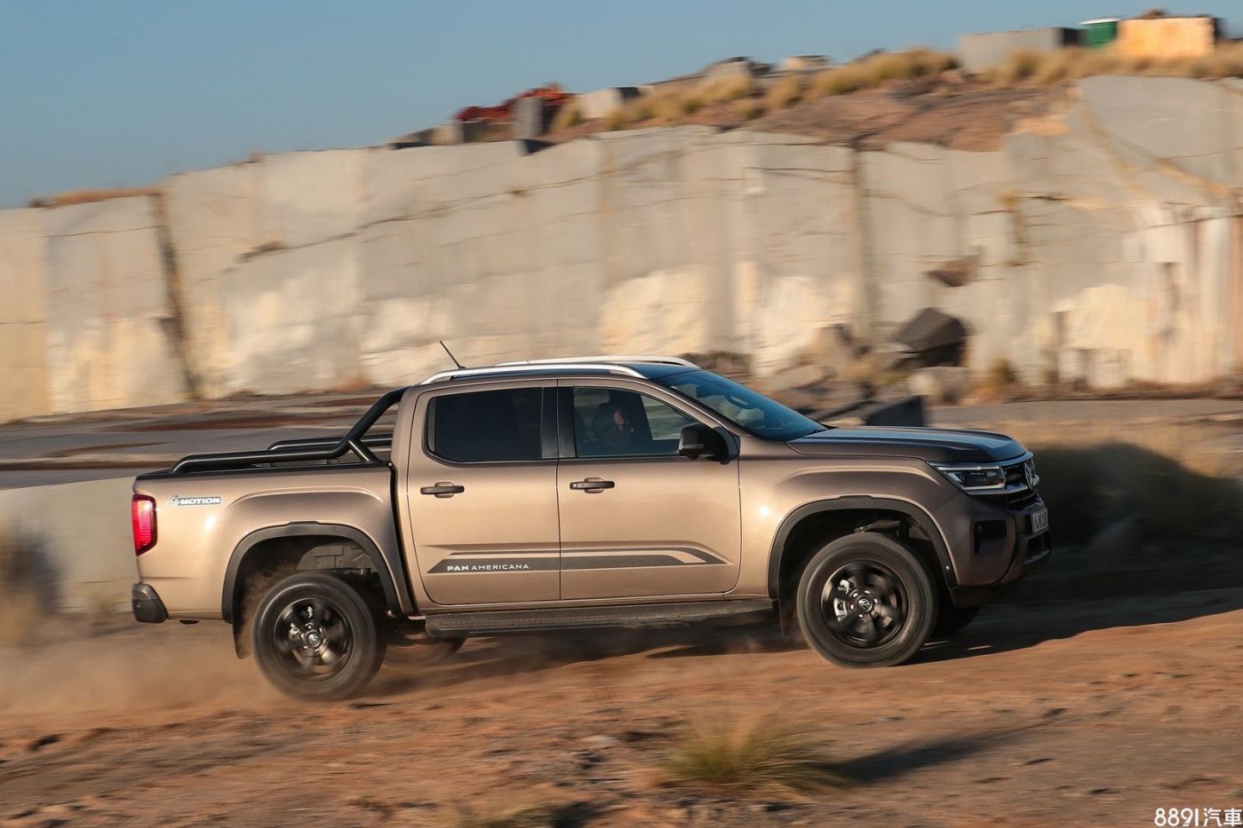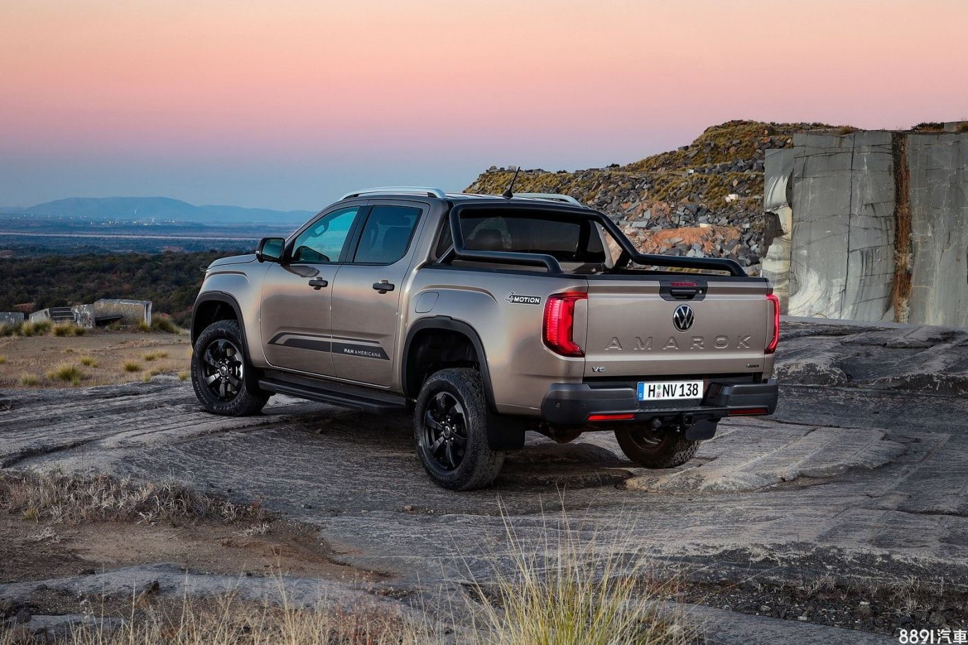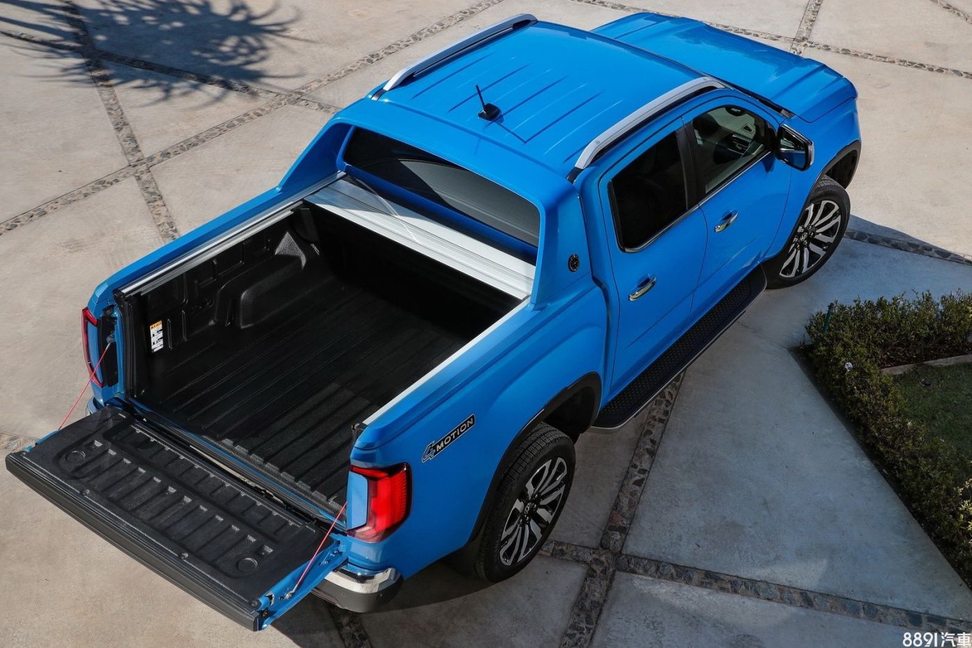 車尾C字尾燈沒有Pick-up常見的厚重,搭配Amarok字樣更顯簡潔俐落。新款Amarok尺碼較舊款放大,車長來到5350mm,比舊款增加96mm,軸距也達到3270mm,讓座艙空間得以有效增長,對比舊款有更好的後座膝部表現。較短的前後懸長度,使得進入角、離去角較舊款出色。
