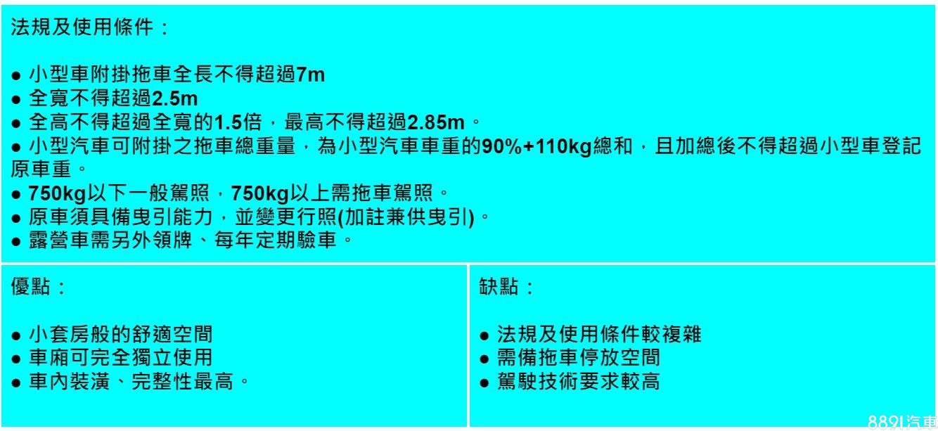 買拖曳式露營車還得要有地方停,在寸土寸金的都會中可不是件容易事,但如果有地方停的話,平常不露營時也能當獨立空間使用,就像是延伸小套房一樣,假日要去露營又能夠拖著走。