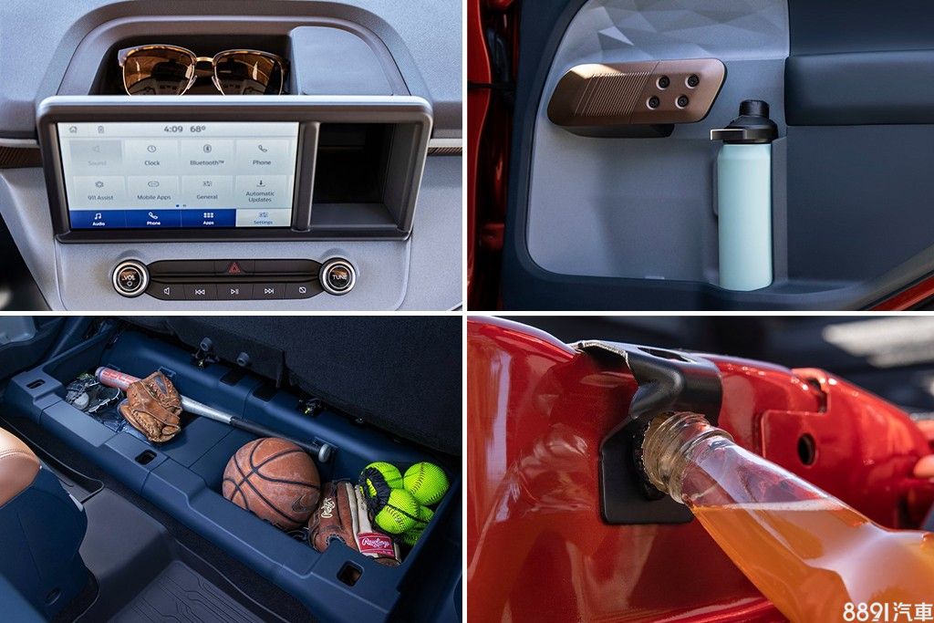 不僅如此,Maverick更擁有許多極具巧思的實用性設計,身為一台強調工作性的貨卡車,原廠將擴充機能盡可能的放大,我們還可以在車室周圍找到許多貼心的收納空間,小至太陽眼鏡大至整顆籃球皆可完整收納,甚至開瓶器也早已安置在車身明顯處,簡直就是個處處替車主著想的完美內裝!