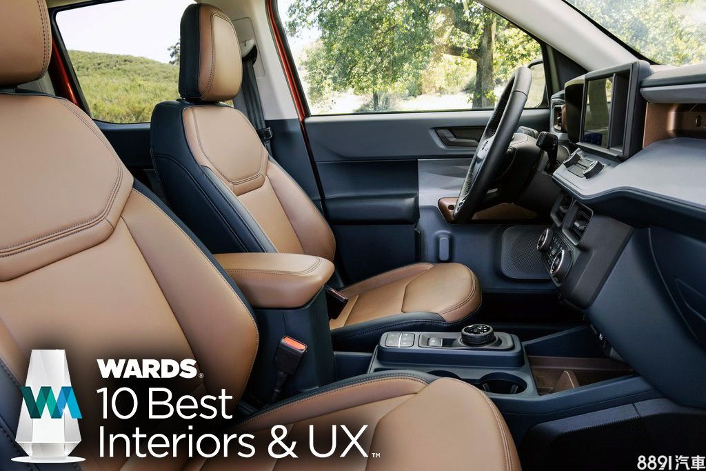也許大家看到Maverick的內裝心中第一個想法會是:「這也能算最佳內裝...?」,但別忘了這項評比的基準點之一還有C/P值,對於售價僅2萬美元起跳的中小型皮卡來說,Maverick的內裝設計超出了這個級距應有的表現,雖然因成本考量全車內飾材質幾乎都採用傳統塑料,但原廠透過顏色和紋路的改變,讓整體看起來活潑有趣,搭配對比性十足的黑/棕雙色面料,Maverick的內裝表現確實超值。