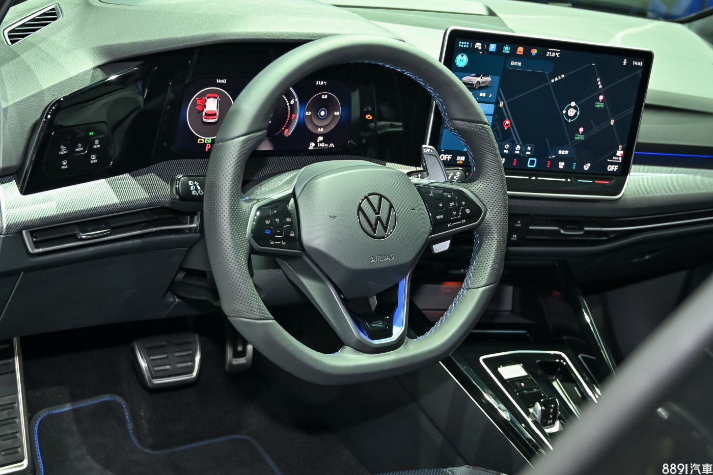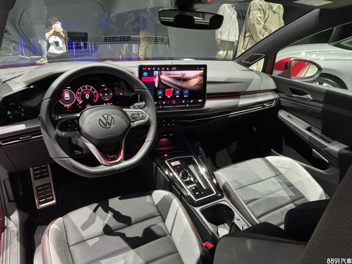 內裝與一般版本也有所區隔,方向盤、座椅上都可見到GTI的logo之外,還有專屬迎賓燈,啟動時儀錶動畫也不同,色調上以黑灰雙色為主,搭配消光碳纖紋路飾板,看起來依舊頗具性能味。