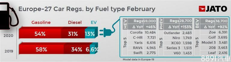 JATO Dynamics的全球分析師Felipe Munoz表示:「由於複雜的法規影響,新車的認證會更為困難,且對於經濟的壓力也在歐洲迅速惡化,這些因素都將對消費者的信心產生不足的影響,而且這還沒有加上新冠肺炎的因素,下個月的數據可能會更為惡化,對汽車產業造成相當大的衝擊。」