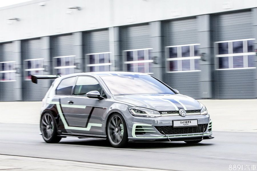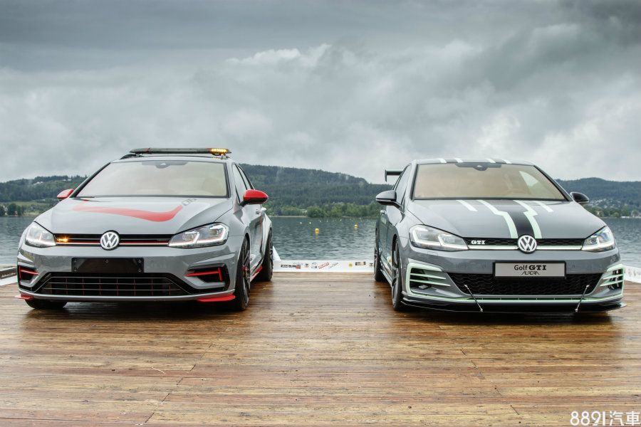 Golf GTI Aurora是以Golf GTI為基礎,車身採用水泥灰作為烤漆基調,並以珍珠黑與薄荷綠進行手工塗裝,除此之外,為突顯外觀氣勢,車體加裝前下擾流、側裙以及大型尾翼等空力套件,視覺上頗有賽車氛圍。