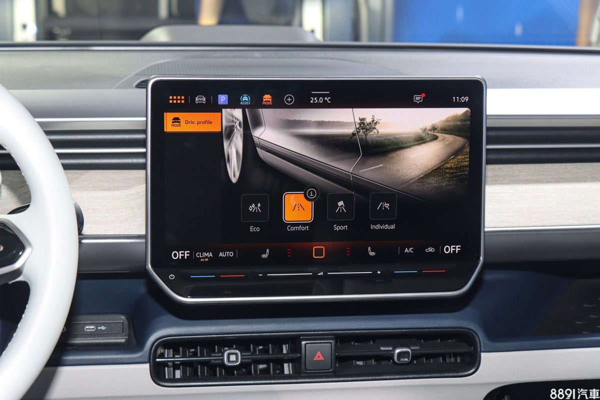 12.9吋多媒體螢幕搭載MIB4系統,下方有電容式觸控按鍵,可以快速進入空調選單,整合360度環景、無線手機連結等便利功能,並會依駕駛模式之不同,給予不同色調與氛圍的顯示樣式,和儀錶一樣可惜的是並未支援中文化界面。