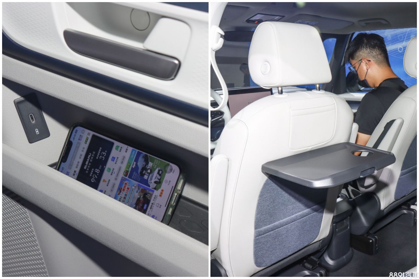 前座椅背有放置手機,以及摺疊桌設計,後車門飾板還有Type-C插槽,貼心又便利。