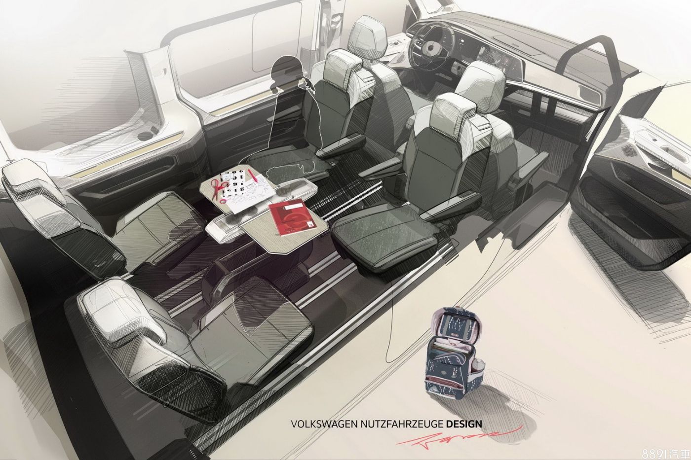說是部分細節…其實就一個重點!就是新的多功能收納摺疊桌。不同於現行的圓形設計,新Multivan的收納摺疊桌採用方形輪廓,面積更大,杯架也不似現行為隱藏式,而是直接設置在中央,另同樣支援滑移、升降。