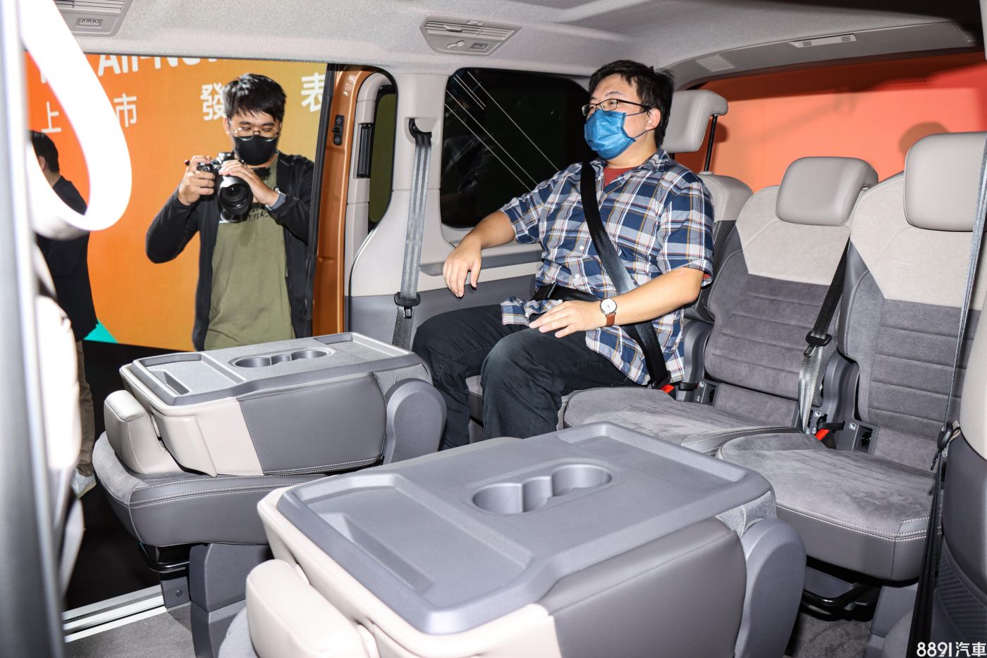 將三張座椅整併成排,即便三人入座,寬度也不至於憋扭,每張座椅皆可獨立調整椅背角度、前後滑移或傾倒。也可視需求將第二排座椅前後倒放,讓後艙成為簡便的會議或交流空間。