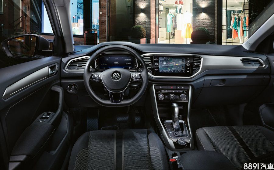 T-Roc內裝部分基本與T-Cross相當類似,國內導入車型將10.25吋數位儀錶、8吋多媒體觸控式螢幕列為標配,可支援App-Connect手機鏡射、福斯智聯等擴充服務。入門車型內裝鋪陳採灰色飾板,搭配白色真皮座椅,而高規車型除了有R-Line專屬套件外,座椅也改以類麂皮包覆。