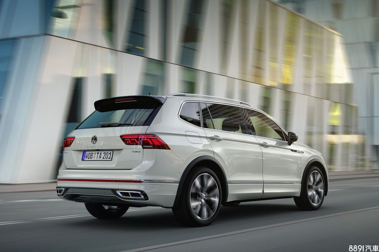 小改款Tiguan Allspace比照短軸版,換上類似八代Golf的新款頭燈組,水箱護罩獲得放大,並運用更粗壯的鍍鉻飾條,以及更簡約的線條,營造寬廣大器感,車尾變動不大,主要換上新式樣尾燈,並改採廠徽下方配置Tiguan車名之設計。