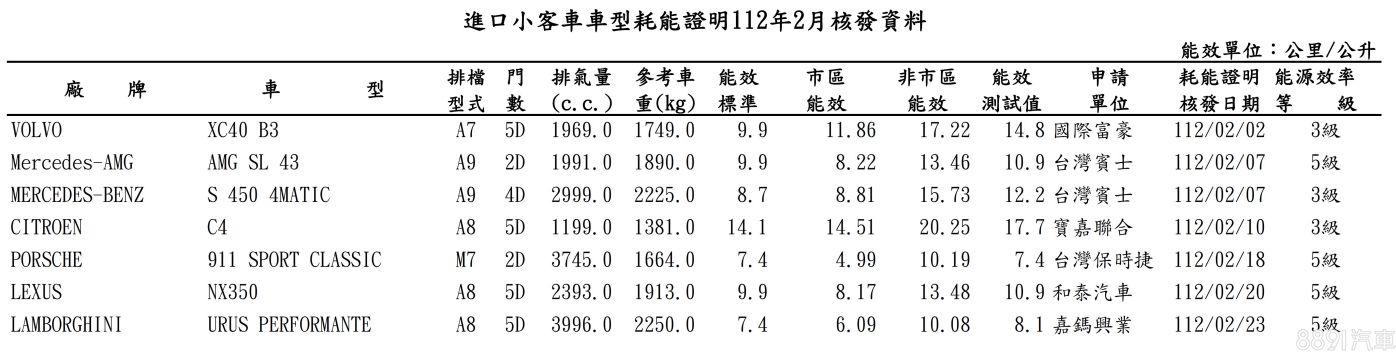 本月能源局油耗名單中沒有出現任何國產新車,主要集中在進口車款,如7系列、XC40、SL都有新動力送測,而新車款則有雪鐵龍C4搶先曝光!