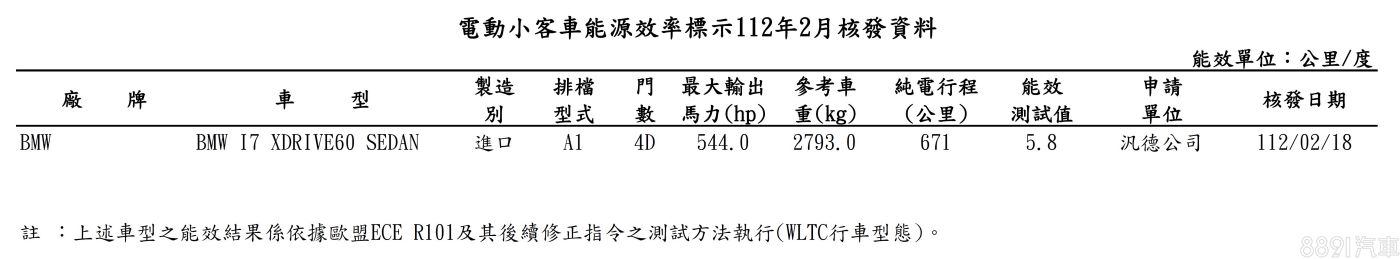 最後就是去年底剛上市的BMW大改款7系列,純電車型i7也通過了相關能耗測試,其於WLTC標準下跑出671km的續航里程,能效測試值為5.8km/kWh。