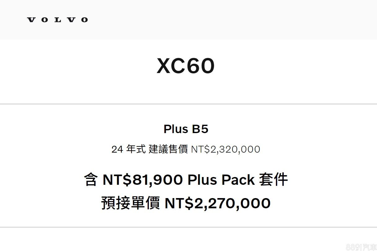 雖說尚未有官方資訊,不過根據經銷端資訊,Volvo XC60預計追加「Plus B4菁英版」,新車型定位車系入門,採限時限量販售,售價設定在199萬,試圖挑戰歐洲豪華品牌同級最便宜的價格,開賣日期則尚待原廠公布。