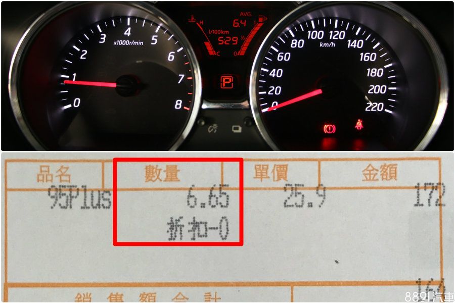 最後回到台亞加油站,將油箱填滿之後,實際加油量為6.65公升,以Google地圖101km計算,換算得到實際油耗為15.18km/L,而旅程電腦為15.62km/L,誤差不大。