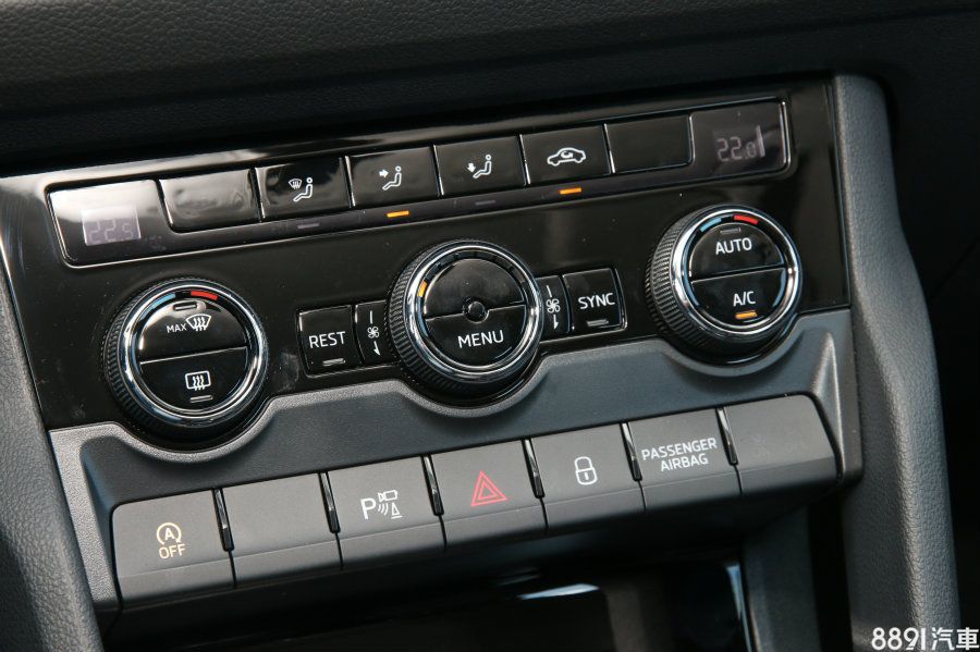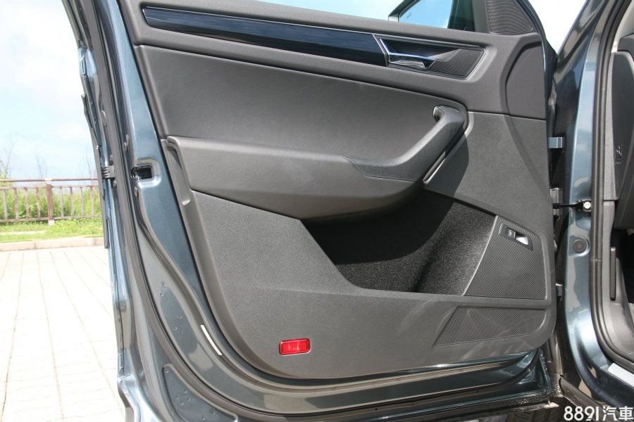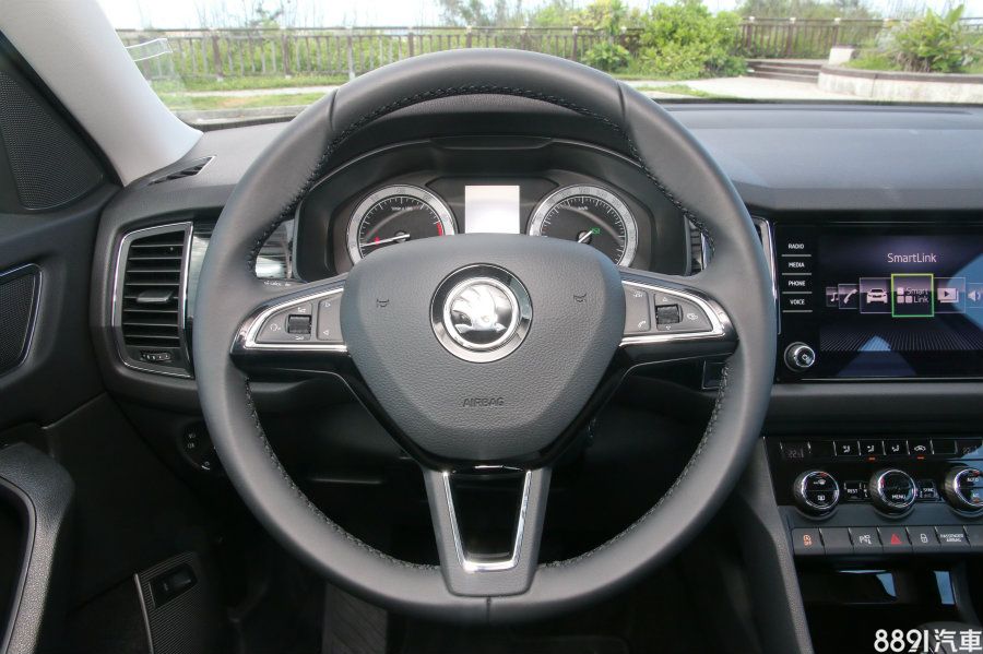 來到本篇車室重點,從真皮方向盤、儀錶、8吋多媒體觸控螢幕與空調面板等,皆不難發現熟悉的家族式格局鋪陳,但Kodiaq多了木紋烤漆飾板質感提升不少,此飾板不僅帶來視覺的賞心悅目,摸起來也相當光滑、平整,從當日簡報得知,電動尾門、三區恆溫空調、9具安全氣囊已列為全車系標準配備。