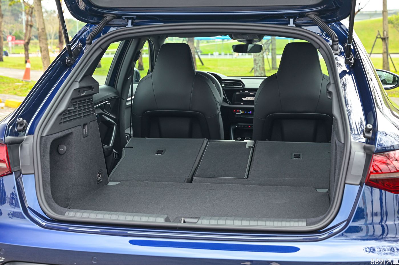 小改款A3從入門款就配置雙前座電動座椅,中階以上有記憶、電熱功能,來到本次試駕的S line椅型會更有運動感,在腰部、肩部加強包覆,椅背上還有銘牌加持,心靈馬力瞬間增加不少。 行李廂容積在一般狀態下有380L,後座椅背傾倒後可擴充至1200L,這與改款前完全相同,差異處在於小改款標配電動尾門,對於女性買家不少的豪華掀背車來說,這絕對是加分項。