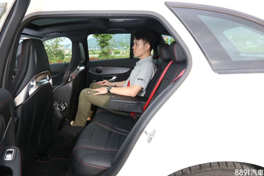 這代A4的後座表現是同級前段班,S4 Avant當然也是如此,以身高175cm的男性示範,頭部與膝部的空間表現良好,且椅墊長度足夠,而椅背角度看似挺直,但實際乘坐的感受適中,也有不錯的支撐性,不過最可惜的是,中央乘客的腿部空間仍較為侷促,從圖中可看出,不但地板隆起程度明顯,前座中央扶手後緣與椅墊之間的距離也頗為接近,等於在中間要「開著腿」坐。