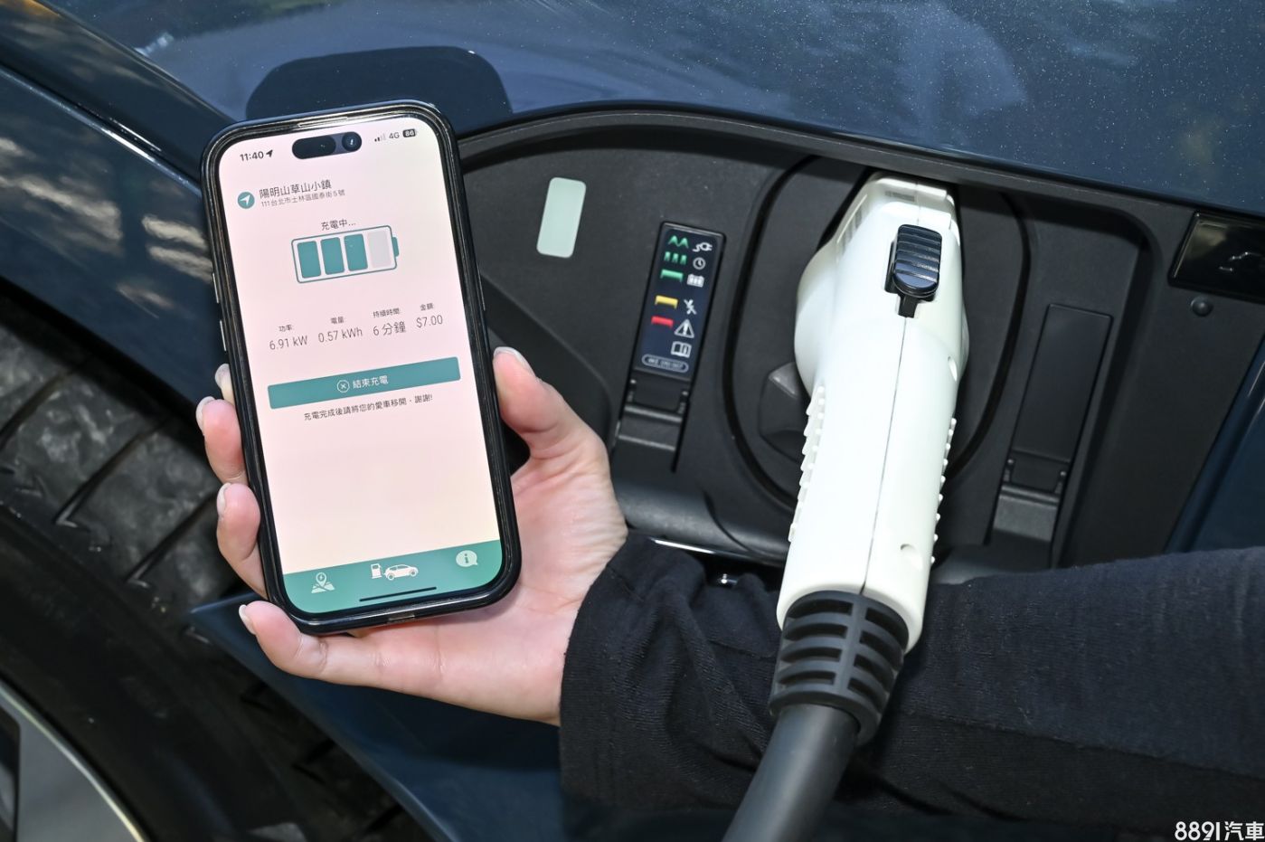 EVOASIS的AC充電樁使用起來夠便利,照著車位上告示牌指引,下載好APP、輸入付款資訊,隨後掃描充電樁上的QR Code,就可以插上開始充電,而手機上也會顯示目前充電狀態,以及累積費率。AC充電頭規格為J1772,功率則為7kw。