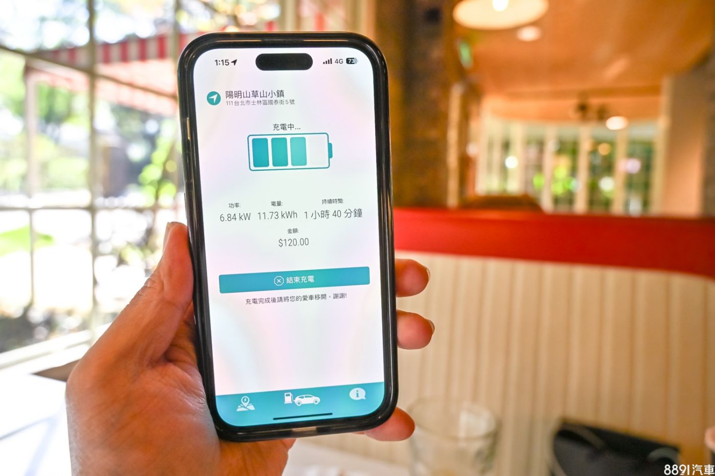 吃完中餐查看充電進度,1小時40分可補充11.73kWh電量,該AC最高功率為7kw,平均功率可達6.84kW,重點是停車加上充電,也才花120元,停一般停車位也差不多是這個錢,頗為划算。