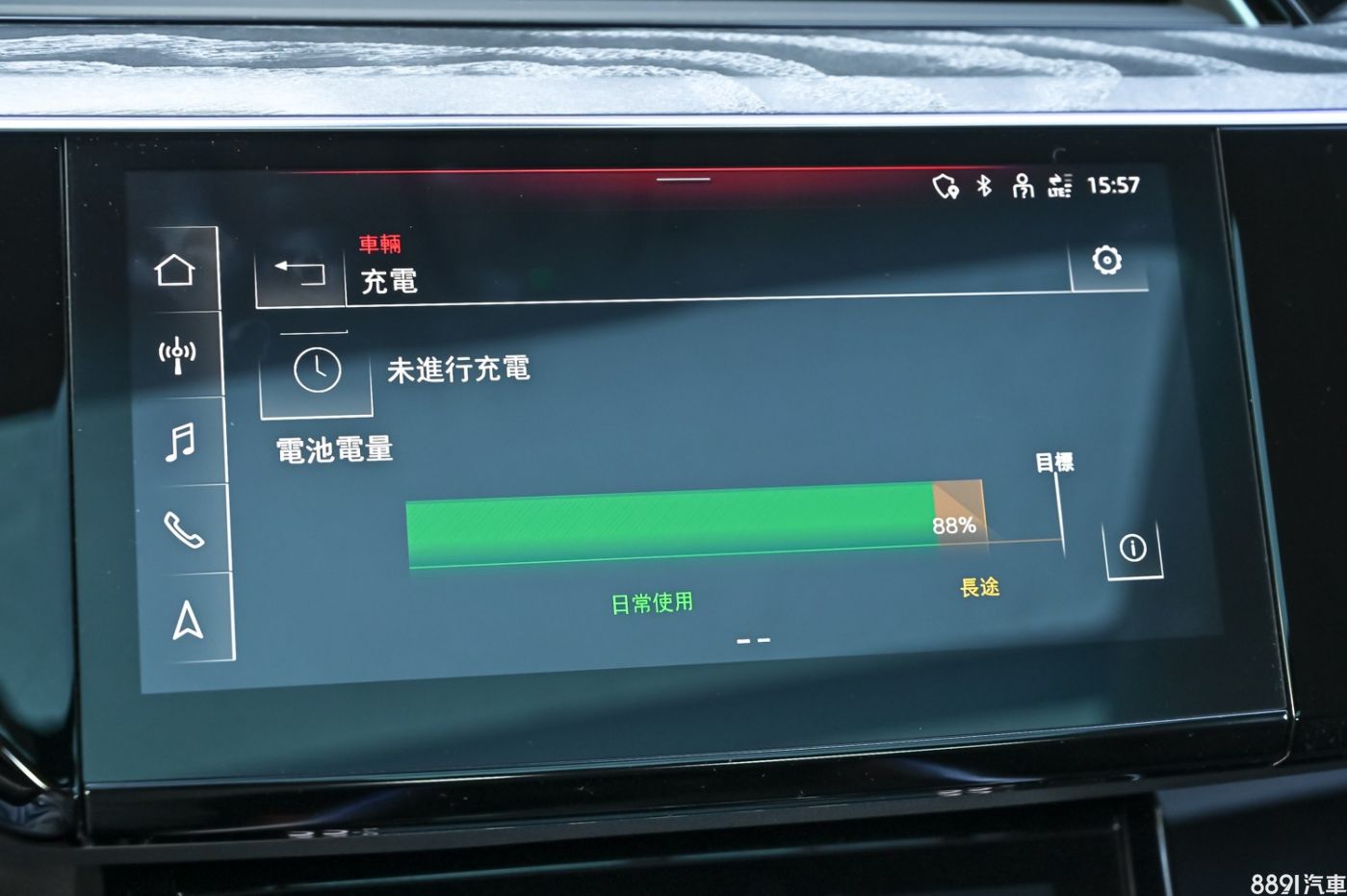 這次開的50 quattro版本,在WLTP測試標準下,擁有491km的續航里程,一般市區通勤代步,甚至是這次台北近郊出遊,約莫80%電量出門都很有餘裕,如果要出遠門開長途的話,再把電量充到滿即可,可透過螢幕中充電介面自行設定上限,保護電池壽命。