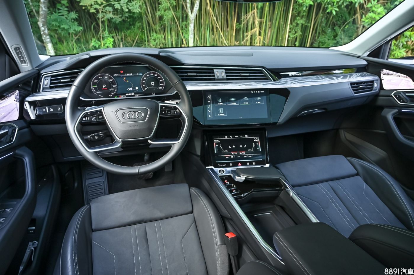 比起現在很多電動車,一味追求內裝簡化,螢幕越做越大,Q8 e-tron於設計上還是嚐得到豪華品牌的精緻感,灰色天然木紋飾板、鋼琴烤漆交織,在科技化鋪陳中,賦予溫潤的質地,至於你想要的功能,都能從三具螢幕構成的虛擬座艙找到,顯示畫質高,還有觸覺回饋震動,整體座介面用起來很順手。