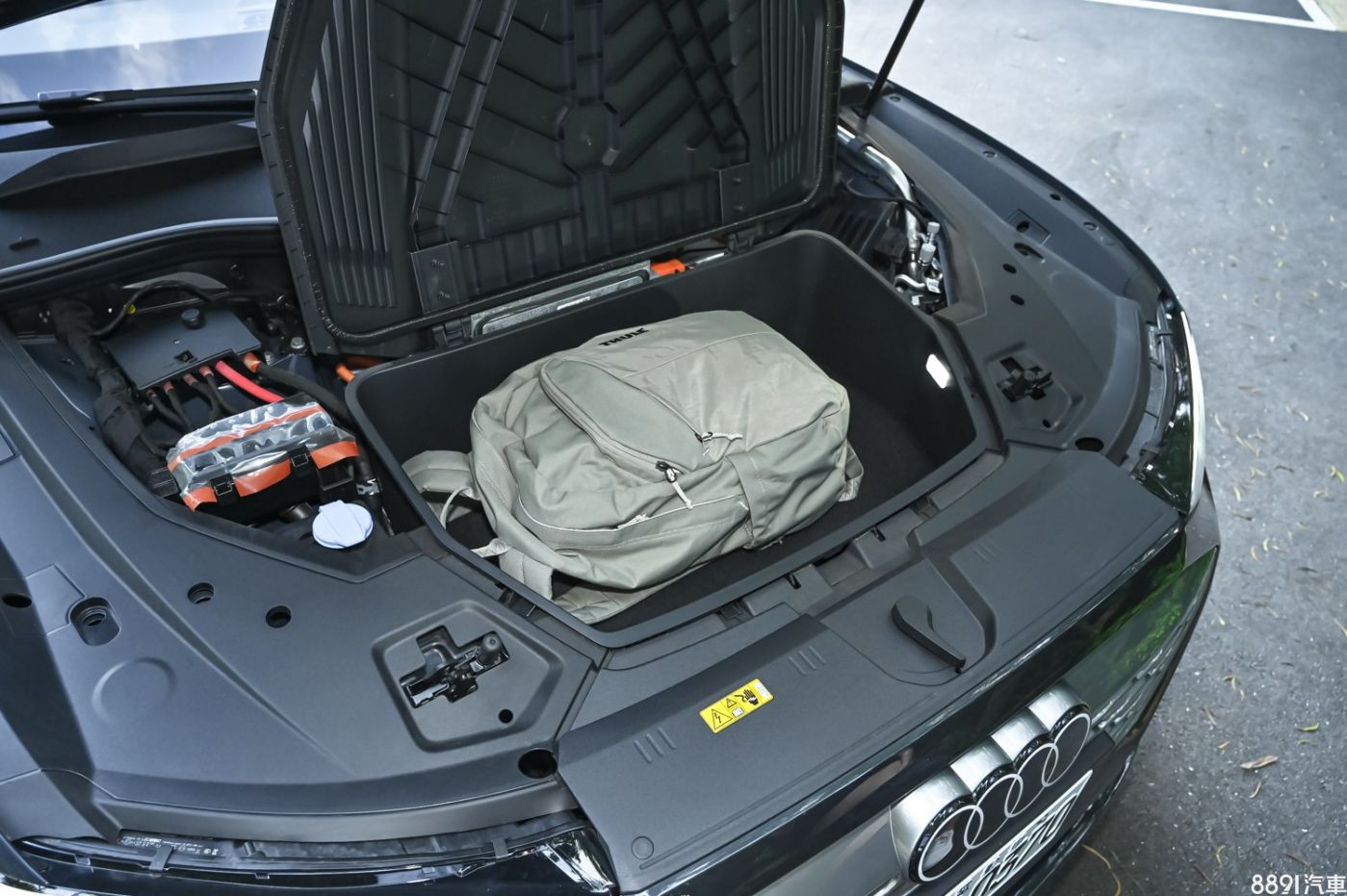 車頭前蓋打開有額外62L的「置物盒」,放進後背包所剩空間不多,可以拿來放旅行充電線、洗車小物等日常使用率不高的東西。