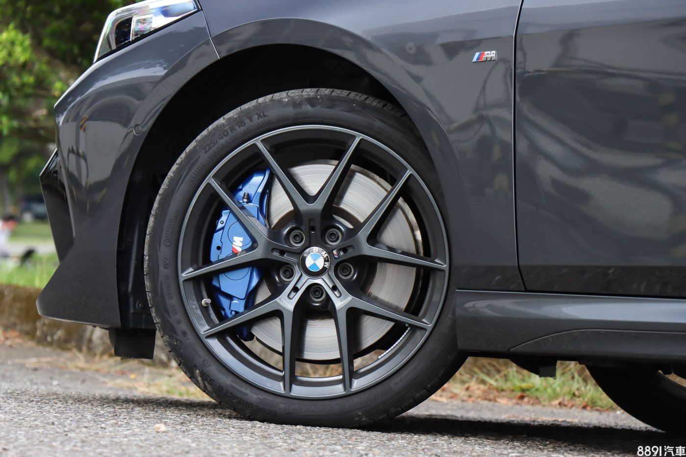 220i國內僅提供Edition M車型,將M Sport套件入列標配,包含運動化空力套件、消光灰M款專屬鋁圈等,細節飾件則以亮光黑漆面來搭配。不過,18吋鋁圈不僅略顯小巧,在大輪拱下也留了堪比跨界車款的間隙,視覺感不夠低趴。