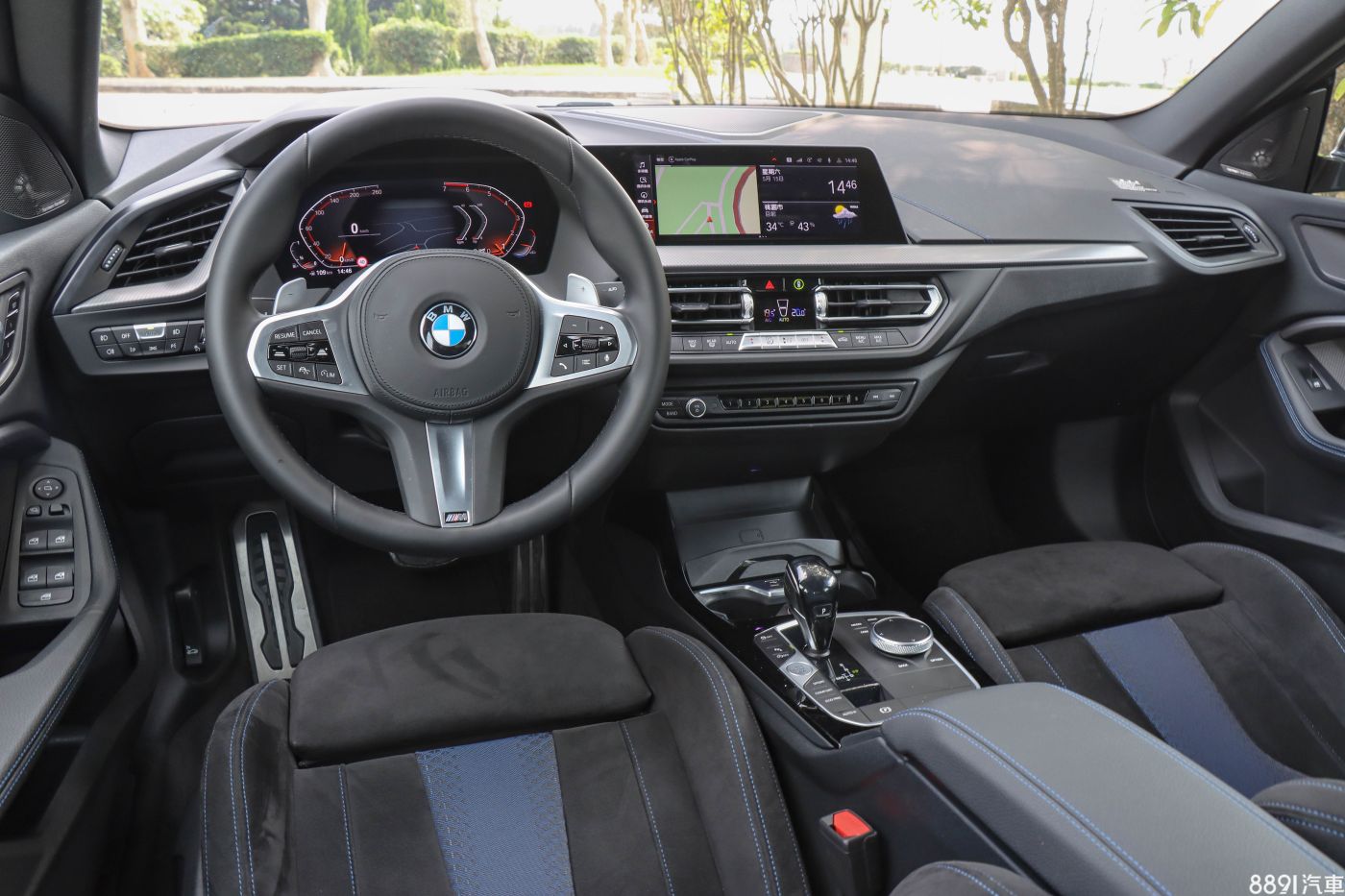 因標配M Sport套件,前排皆配置電動可調M款跑車座椅,駕駛座獨具兩組記憶,不論包覆性及支撐感皆相當扎實,而Edititon M版本皆為椅面採人造麂皮/織布混拼包覆。