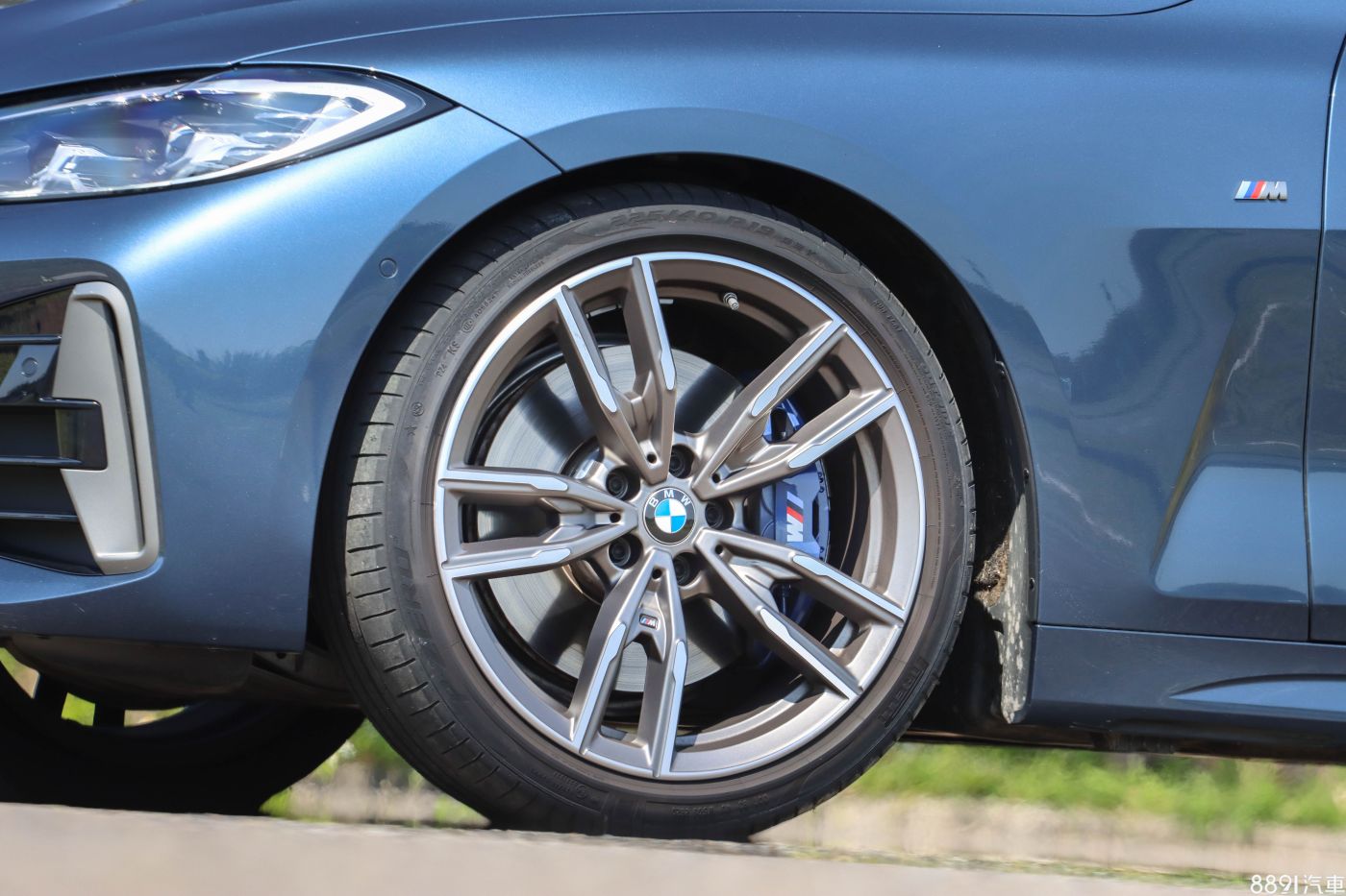 19吋M Performance鋁圈採鈰灰色+金屬切削搭配,造型簡單有層次,配胎採前225/40R19、後255/35R19的倍耐力P ZERO原廠認證跑胎,乾地、濕地表現都不差。想要呸的盡興,制動表現也得夠用,430i以上車型標配M款煞車套件,用上前四活塞、後單活塞卡鉗以及加大碟,藍色卡鉗塗裝夠顯眼,也可加價1.7萬換成「紅色」卡鉗。