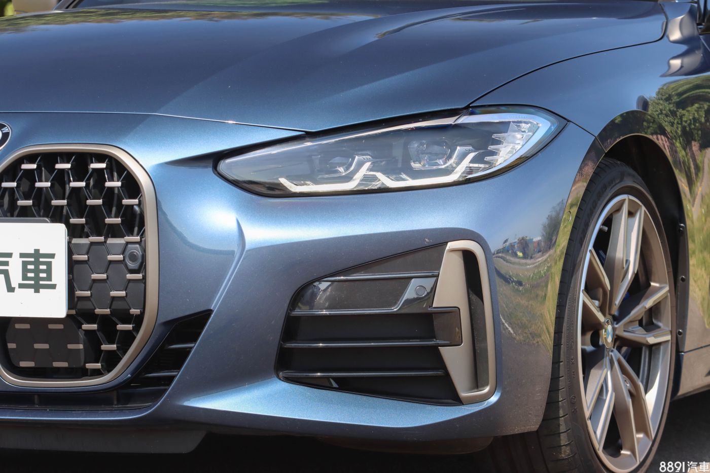 BMW 4 Series擁有辨識度極高的「大鼻孔」車頭造型,配合狹長型燈具設計,營造出低趴兇悍的視覺感,也與3 Series房車面容有明顯區隔。本次試駕的M440i版本標配M Performance外觀套件,於保桿、後視鏡等處採用「鈰灰色」細節,加上專屬造型鋁圈,更能凸顯性能氣息。