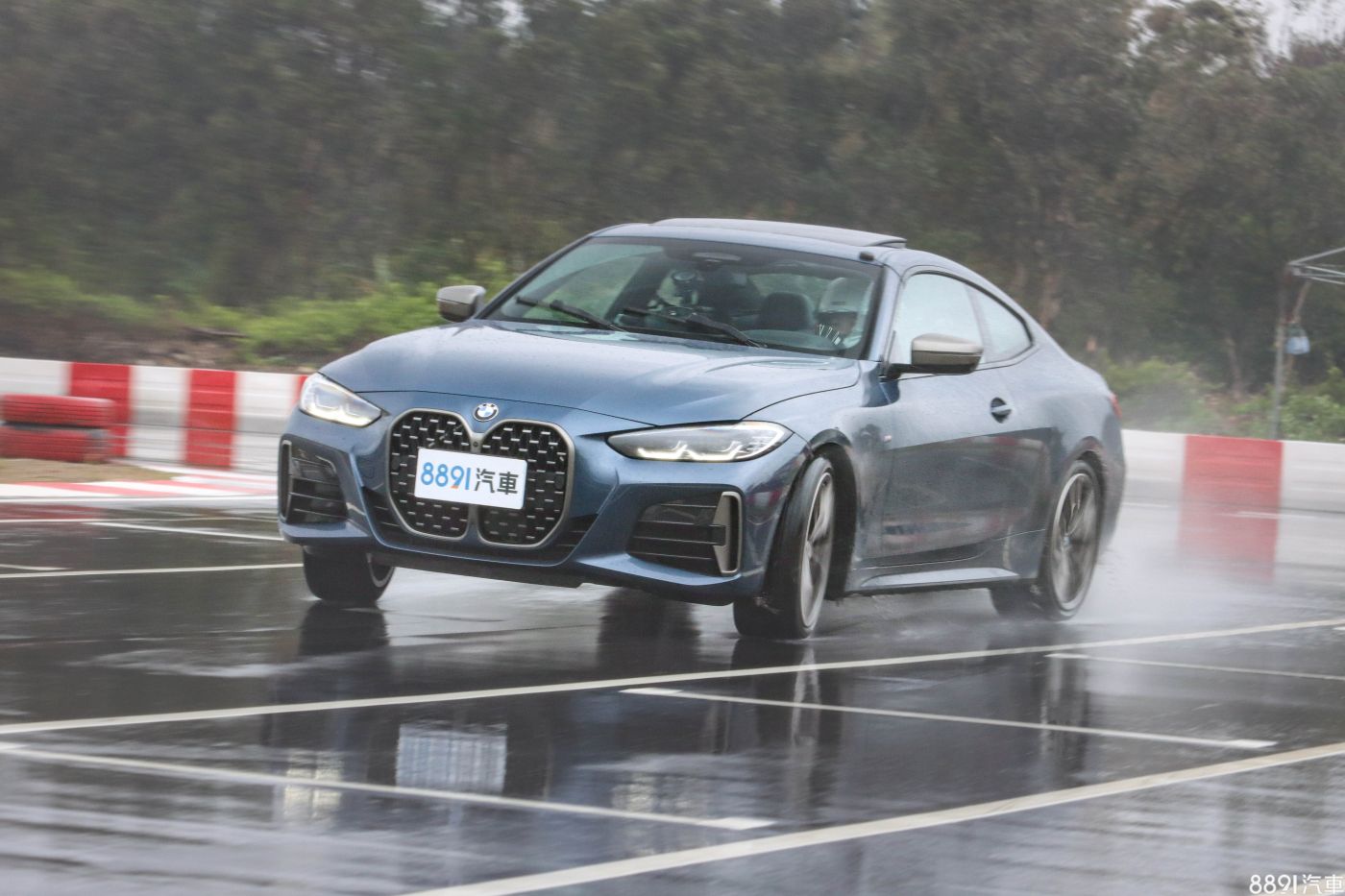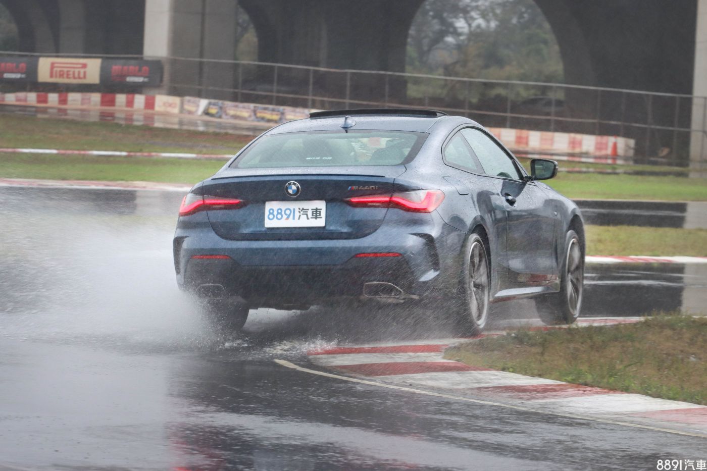 賽道測試當日傾盆大雨,跑道積水嚴重,在行程已安排好的情況下,只能按原定計畫進行測試,M440i的374+11hp/51kgm出力頗大,還好具備xDrive四驅系統,若是像上一代340i/440i採後驅設定,跑起來絕對讓人膽顫心驚!而有了xDrive四驅系統,出彎就比較能放膽股催油門,但你若因此鬆懈、輕忽,恣意、粗糙的踩踏油門,那麼M440i絕對會不留情面的甩尾擺頭,因為車上的xDrive四驅系統的分配特性偏向後驅,安定至上、樂趣放一旁這件事,在M440i身上不存在!