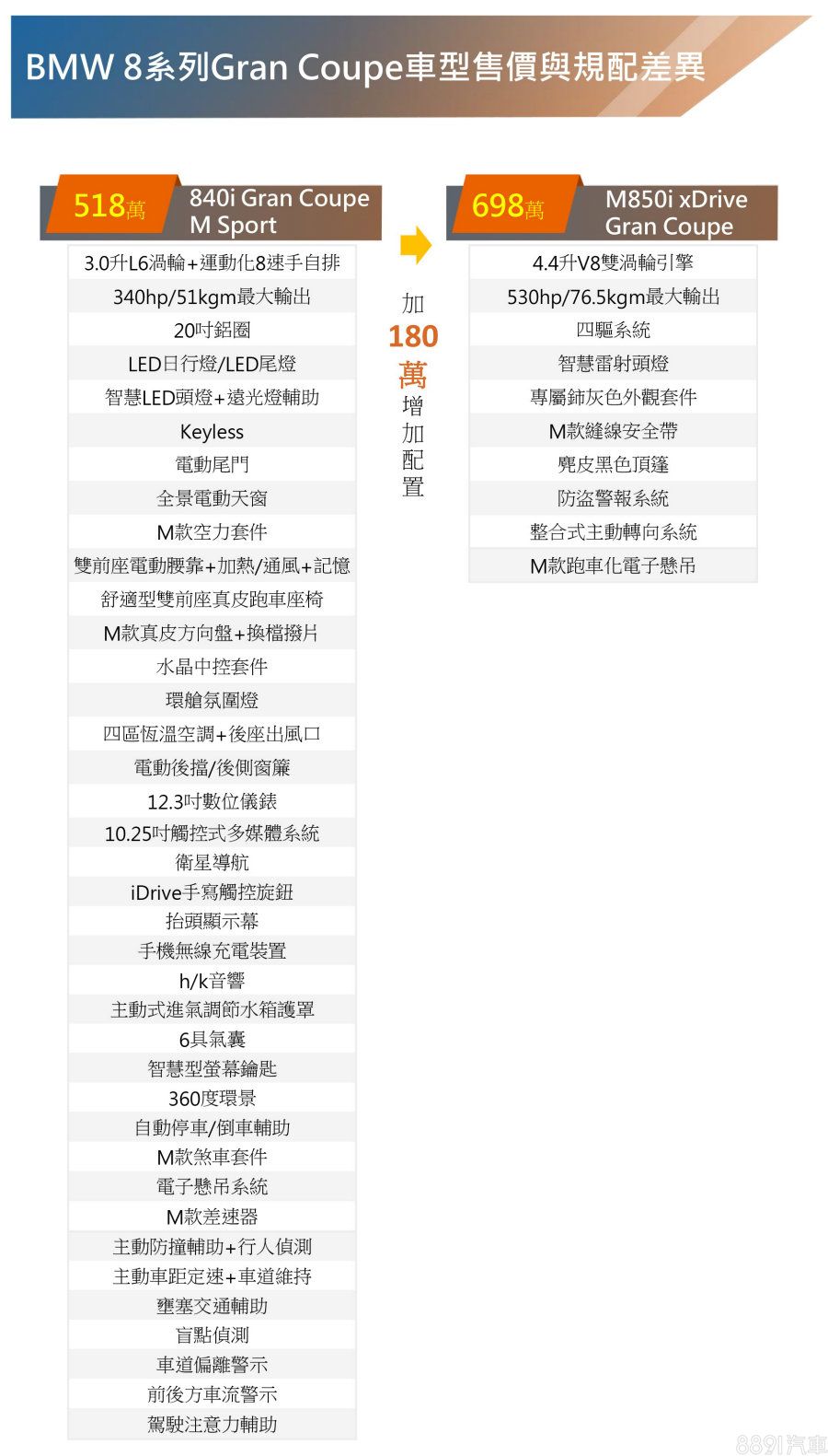 作為BMW旗艦四門跑車在台的入門選擇,840i Gran Coupe M Sport(518萬)售價比頂規的M850i xDrive Gran Coupe(698萬)少了180萬元,主要差別除了內外細部妝點、頭燈組,重點便是動力與驅動模式,引擎從V8變成直6,xDrive四驅變成RWD後驅,差很大,還夠成為稱職的旗艦四門跑車嗎?
