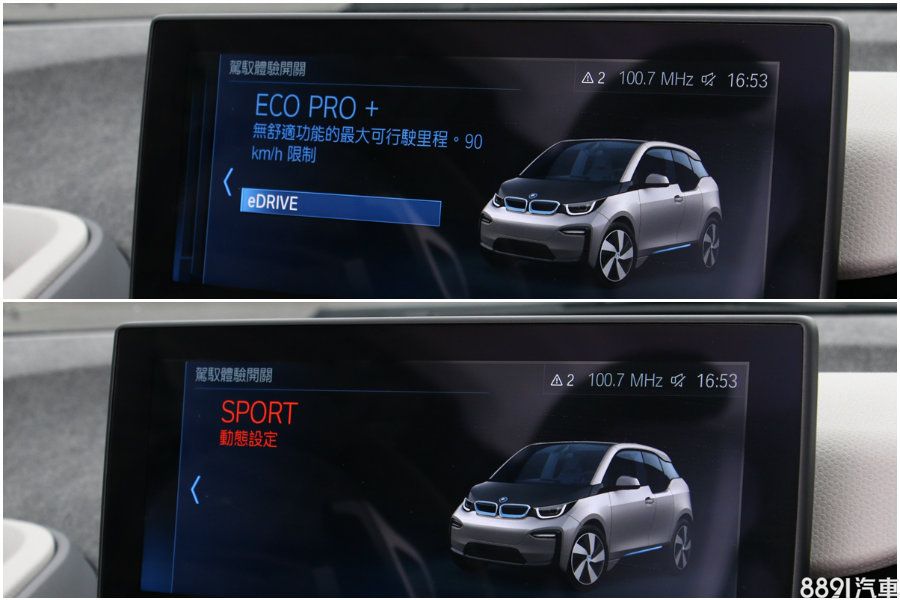 基本的i3有Eco Pro、Eco Pro+與Comfort三種行車模式,i3s則多了Sport選項,實際體驗,主要會使用的大概就Comfort或Eco Pro,最節能的Eco Pro+會主動關閉冷氣壓縮機,且有90km/h的速度限制,在台灣環境比較不適合,至於Sport模式,帶來更敏捷的「電門」反應,但難免也因此會消耗較多的電量。