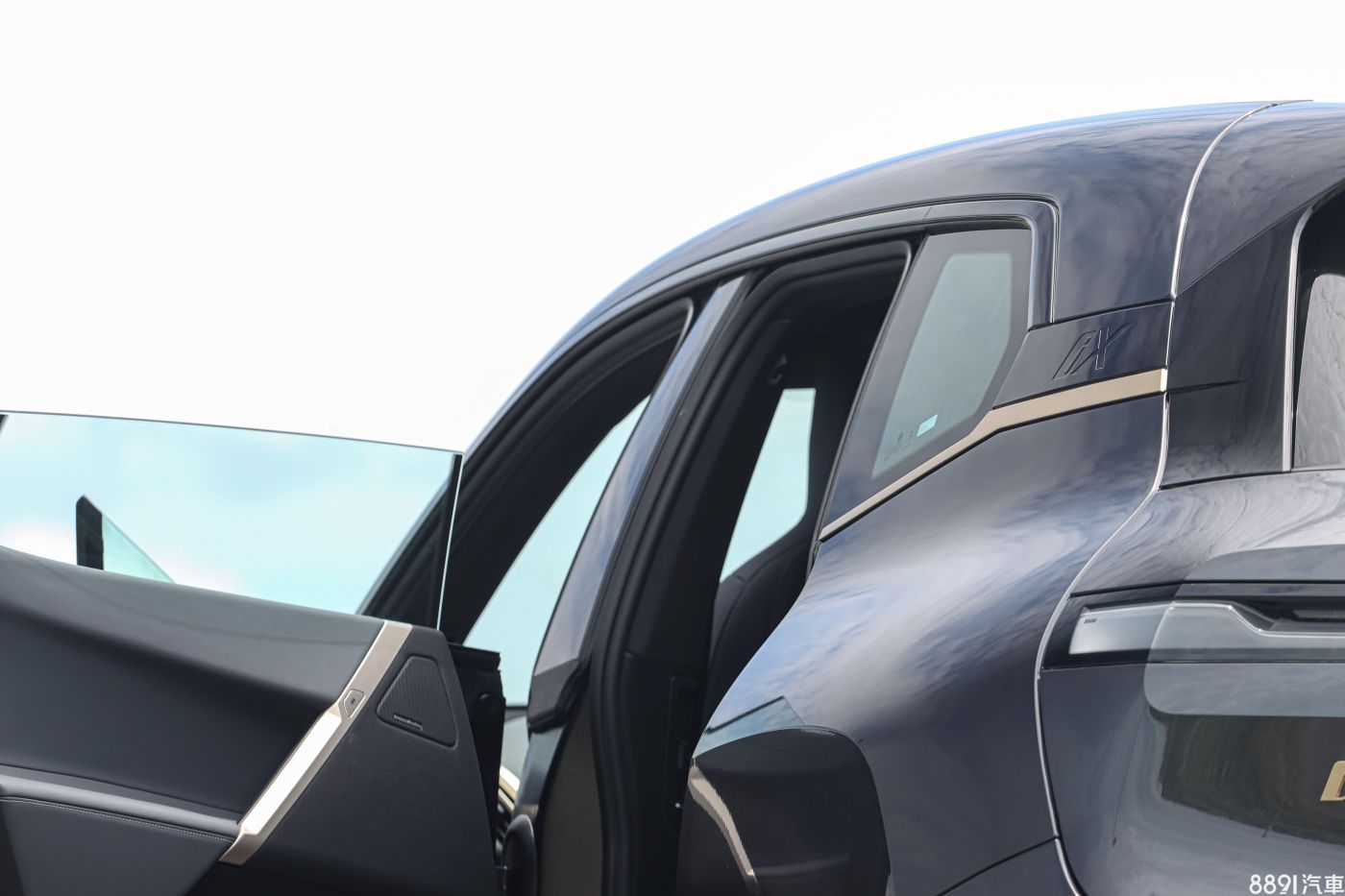 iX採用無窗框車門,除了略添跑格氛圍,主要原因還是因為要降低風阻,而C柱後黑色飾板上有iX字樣,小地方卻很吸引我。