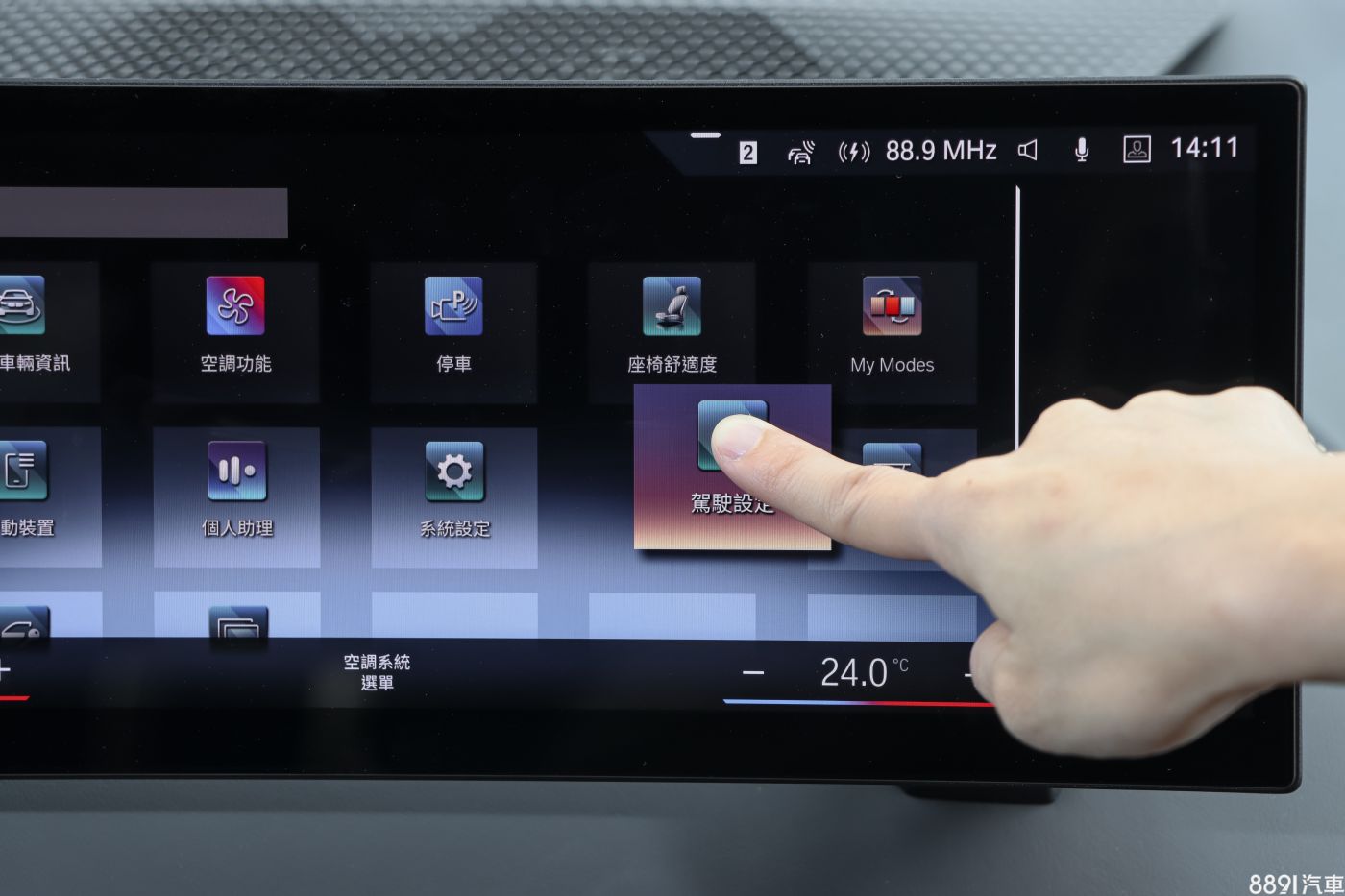 和同樣搭載有BMW Operating System 8的2AT不一樣,iX還是保有iDrive手寫觸控旋鈕之配置,加上水晶套件,豪華度有感,不過說實話試駕全程除了進行駕駛模式切換、我幾乎沒用到,都是用手在觸控螢幕上點好點滿。
