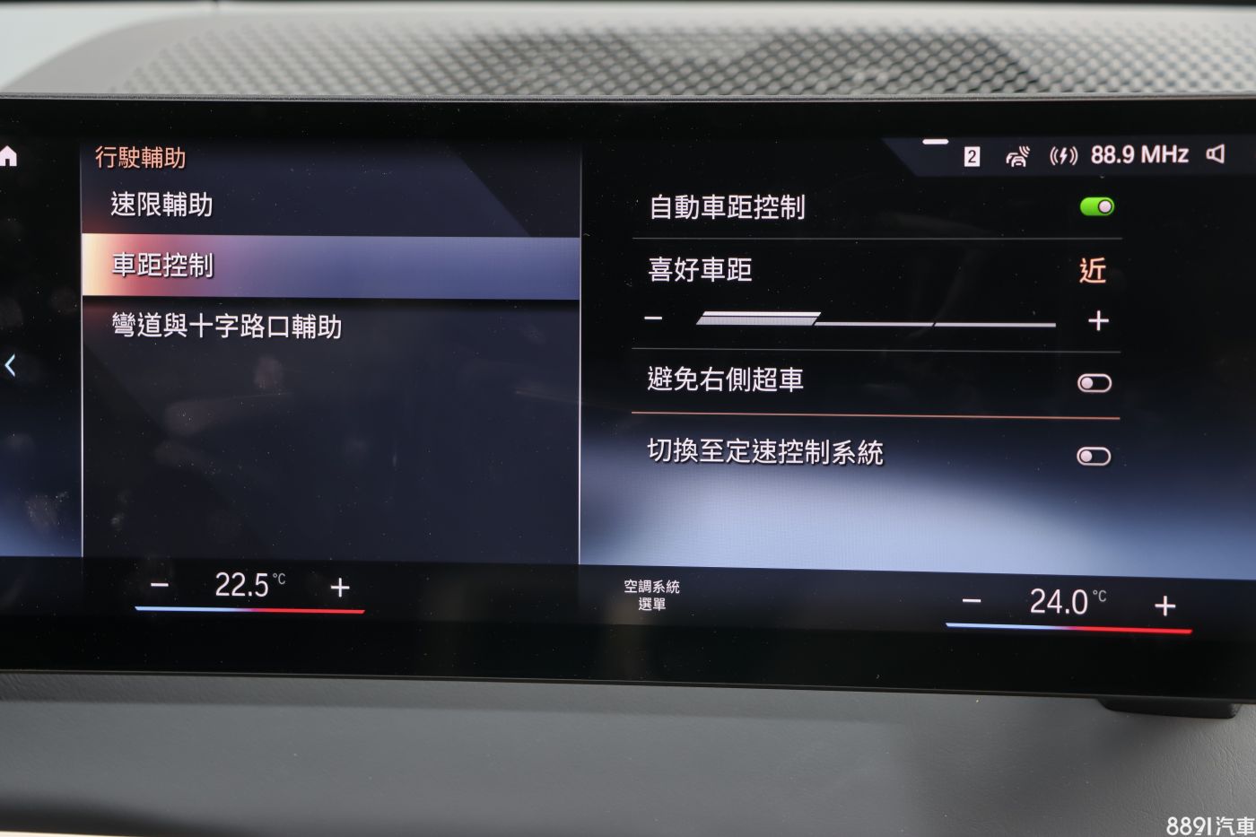 方向盤上的定速區塊無法進行車距調整,只能從多媒體系統進行設定,我開啟「自動」,系統會參考所選的車距喜好、當前路況等自行調節,拿捏精準度個人覺得很可以信任。還有一個「避免右側超車」功能,只要開了,若左前方有車,本身車輛時速就不會超過左前方的車,也就是說若遇到左前龜車,就會面臨一起「龜」的窘境…關吧。