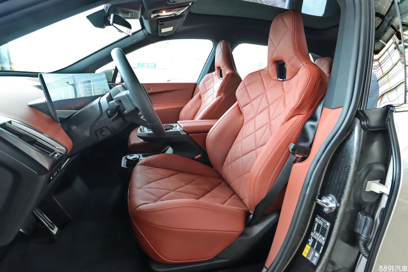 內裝變動極細微,基本上維持原設計,M款方向盤在其他車系都可見到,但首度出現在iX,也因為M Sport套件,因此飾條為深灰色,這輛iX xDrive45 M Sport內裝選擇深紅色,質感細膩,但也可選擇M Alcantara麂皮/Sensatec皮質搭配,全黑+大量麂皮+椅背M線條點綴,呈現高度運動化氣息,雖然夠帥,不過我還是覺得照片裡的搭配更符合iX氣質。