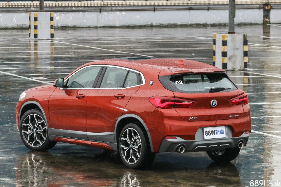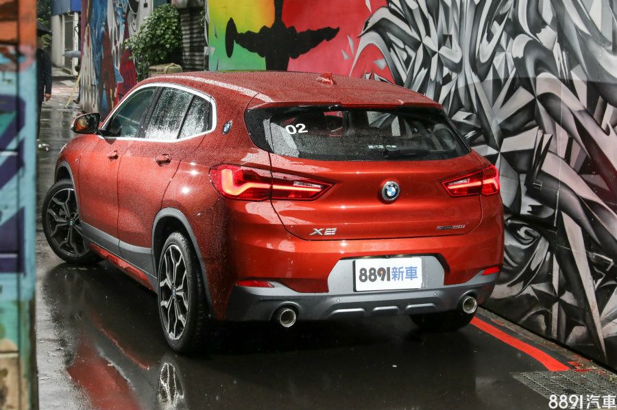 X2的尺碼較X1來得緊湊,不過軸距同樣都維持在2670mm,車尾使用橫向鈑線,營造凹凸有致線條,尾燈輪廓也與X1相近,但內部光條為新設計,下方的兩側雙出尾管也頗為碩大,而M Sport X版本除了施以冰河銀灰漆,後保桿及後下分流器的造型,亦更富運動化風格。