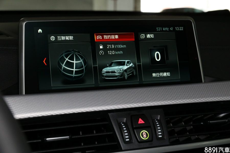 因試駕車選配高階衛星導航,中央資訊幕從標配的6.5吋升級至8.8吋,並具備觸控功能,可從中選取主動安全科技的調整,包含車道偏離警示、主動防撞輔助等,介面也屬最新的iDrive 6.0系統,不過像是Apple Carplay這類方便的機能仍需額外選配。