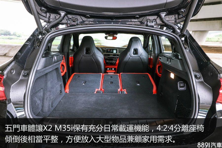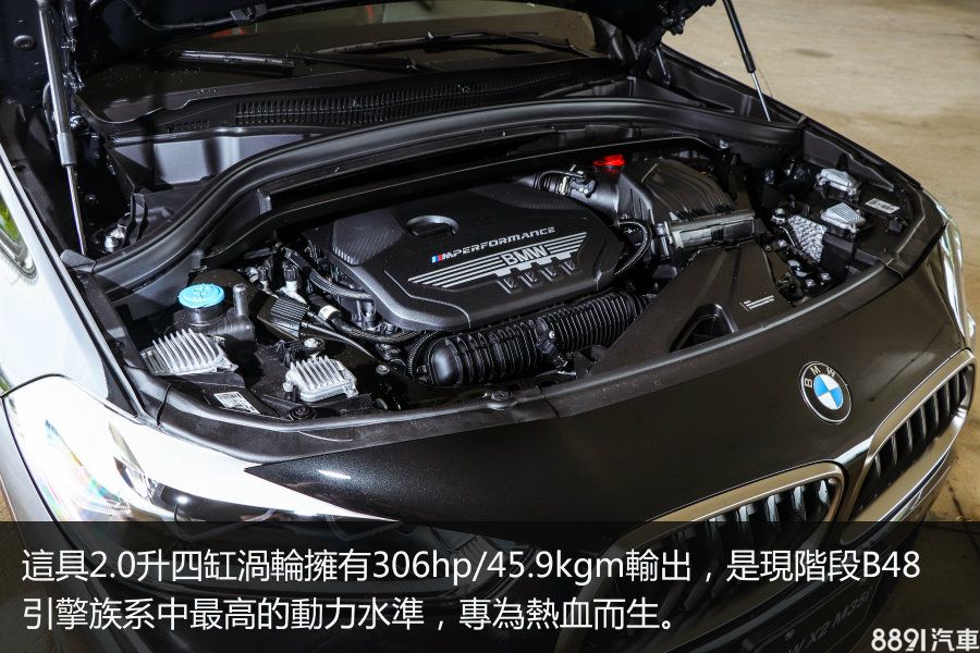 無視M Performance過往遊戲規則,X2 M35i在既有前驅底盤平台之上進行開發,成為M字招牌底下首款橫置引擎、直列四缸的性能化車款。可別以為BMW工程師就此砸了招牌,那具2.0升渦輪動力坐擁306hp/45.9kgm,是B48系列引擎史上最強悍的調校,配上電子化程度極高的xDrive四驅系統與M款差速器;論規格與外型,X2 M35i依然保有那份看來深藏不露,讓人躍躍欲試的能耐。
