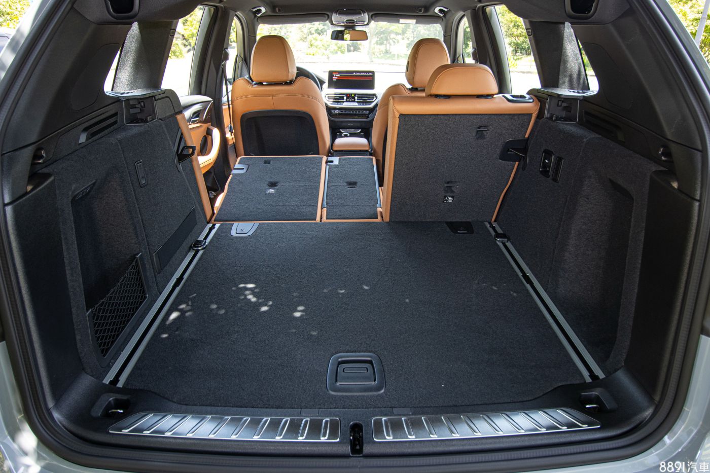 X3在一般狀態下擁有550L的行李廂空間,後排座椅4/2/4分離傾倒,可以依照不同置物需求靈活調度空間,若是在椅背全倒狀態下,可將行李廂容積擴充至1600L超大容量。