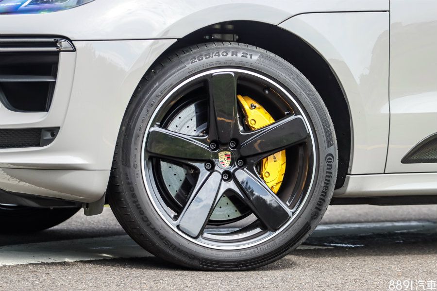 Macan Turbo標配為20吋鋁圈,試駕車則選配21吋的Sport Classic款式,造型簡單,並且有尺碼放大的視覺效果,搭配前265/40R21、後295/35R21的馬牌CSC 5P性能跑胎,寬度比起X4 M Competition大不少,在性能方面有更多先天優勢,至於內部的鮮黃色PCCB陶瓷複合煞車系統(29.62萬),採用前6活塞、後單活塞煞車卡鉗,碟盤和對手一樣是前396mm、後370mm,制動力、踩踏感受沒什麼能挑剔之外,也代表選配程度的「趴數」!