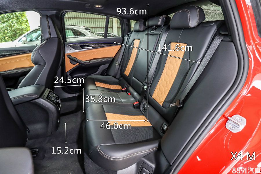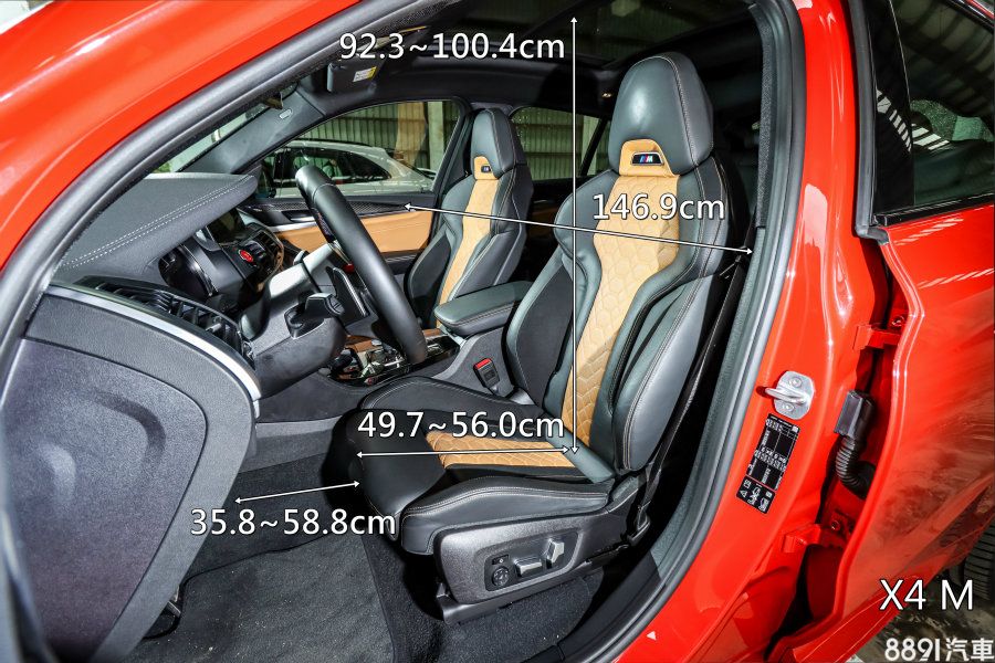 X4 M的前座造型熱血,實際乘坐也是如此,不論腿部或腰部的支撐性與包覆程度充足,肩部造型也特別強化這部分,激烈操駕有非常牢靠的感受,不過偏硬的泡棉設定也讓舒適度稍微打了折扣,沒有Macan Turbo那麼放鬆,另外一點是前座標配加熱功能,適合夏天的通風功能要另外加價6.2萬元選配。
