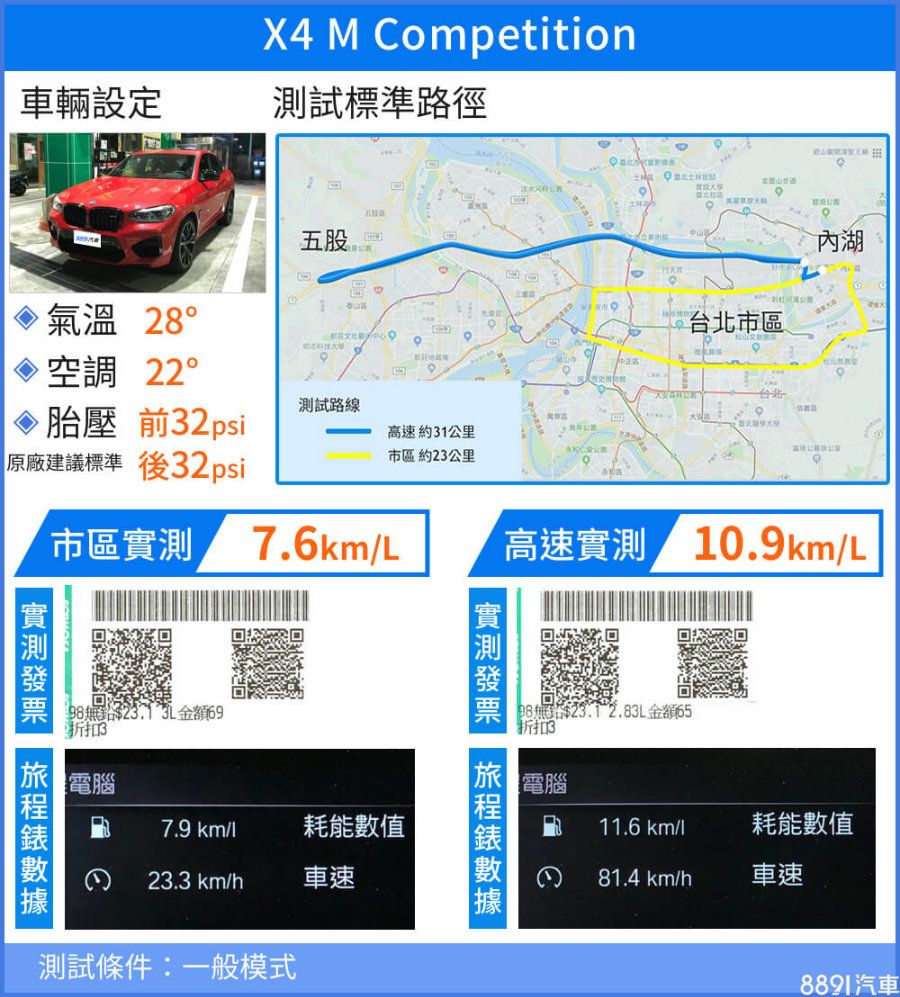測試當日的路況順暢,兩部車都是正宗的性能跑旅,如果市區中要盡量達到省油效果,怠速熄火功能持續作動的時間就越長越好,關於這點,X4 M Competition和Macan Turbo都能完整發揮效果,幾乎都能維持引擎熄火狀態到綠燈重新起步,也讓兩車的市區油耗數據都在可接受範圍,X4 M Competition也只是略好一些,畢竟都是6缸高性能引擎、四驅系統和大尺碼圈胎配置,本來便不注重在節能方面,而高速部分,仍然是X4 M Competition好一點,整體來說差異不大,馬兒會跑、多吃點草也無妨。