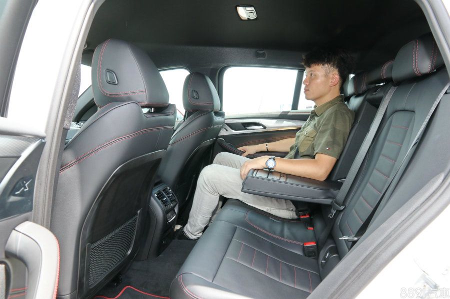 後座的空間和舒適性只能說是一般,以175cm男性示範,腿部表現合理,斜背造型下,頭部也沒有太多壓迫,但椅背角度比起同血緣的X3來得挺直,相較之下,乘客坐姿就比較沒那麼放鬆。